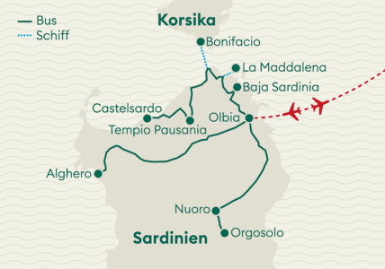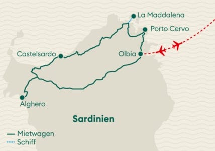 Betörende Wildkräuter, Olivenhaine, atemberaubende Küsten und erstaunliche Zeugnisse der Vergangenheit: Sardinien bietet eine überraschende Vielfalt. Das wahre Sardinien findet man weitgehend im Landesinnern, wo die Geschichte der Insel in den Traditionen weiterlebt. Sardiniens Strände zählen zu den schönsten in ganz Europa. Karibisch-weisser Sand und unwirkliche Felsformationen prägen die Insel. Dazu gibt es einen Mix aus italienischem und orientalischem Essen und beste Weine!