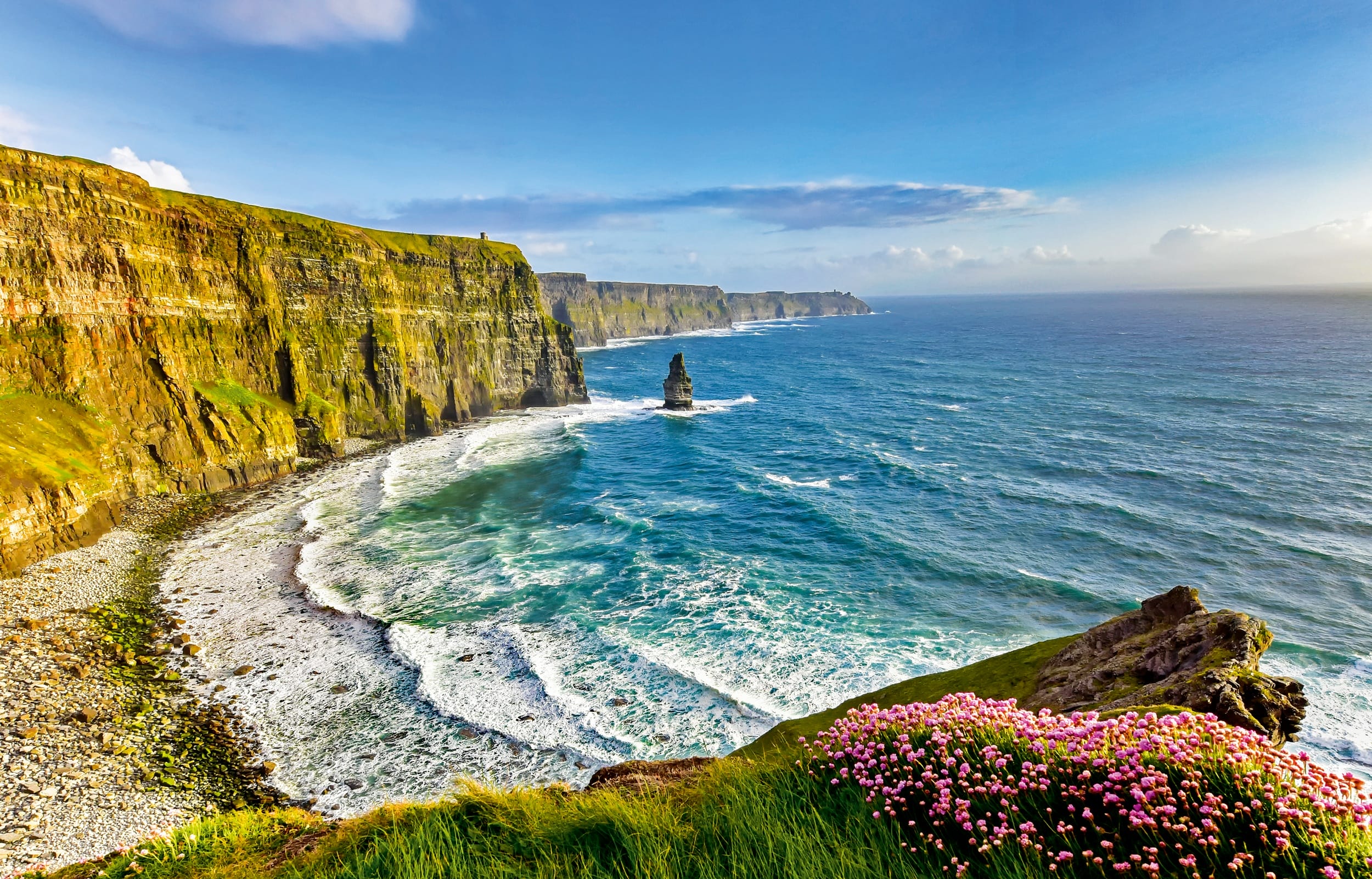 Entdecken Sie Irlands inspirierende Landschaften und lebendige Städte. Dublin mit seinen zahlreichen Pubs und die Cliffs of Moher sind nur zwei der Highlights, die es auf einer Reise durch die grüne Insel unbedingt zu entdecken gilt. Auf unserer Reise passieren Sie auch die Grenze zu Nordirland, welches Teil des Vereinigten Königreichs ist, und fahren an die nördliche Antrimküste, wo Sie bei dem zum UNESCO-Welterbe gehörenden Giant’s Causeway einen Stopp einlegen.