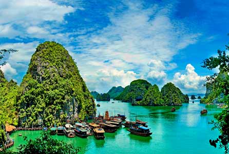 Einzigartig sind die tropischen Naturszenerien. Die wohl eindrücklichste bietet die Bucht von Halong mit ihren knapp 2000 üppig bewachsenen Kalkfelsen. Hier übernachten wir auf einer Dschunke, einem traditionellen Segelschiff. Am Abend lernen wir Frühlingsrollen zuzubereiten. Wer mag, startet am Morgen darauf an Bord des Schiffs mit einer Thai-Chi-Lektion in den Tag. Besser lässt sich Südostasien kaum erleben.